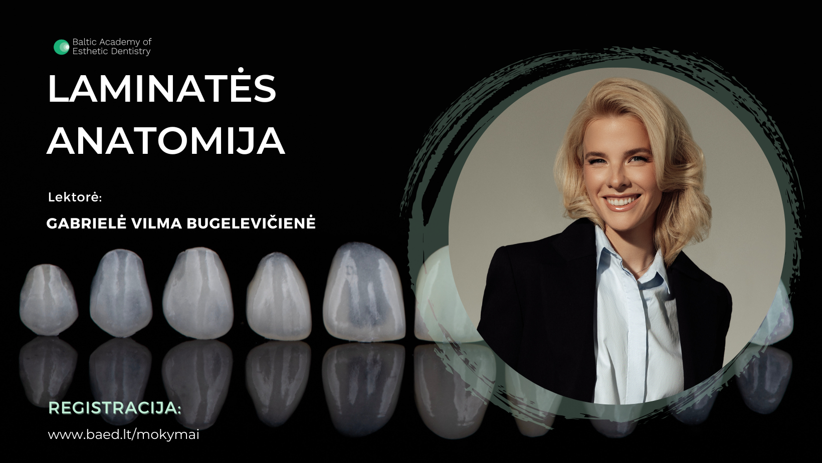 Laminatės anatomija. Lekt. Gabrielė Vilma Bugelevičienė 28 lapkričio @ 9:00 - 18:00 Laminatės ANATOMIJA kartu su gydytoja odontologe ortopede Gabriele Vilma Bugelevičiene. Kam skirti šie mokymai? Jau protezuojantiems gydytojams odontologams, norintiems pagilinti žinias ir patobulinti įgūdžius PRIEKINIŲ dantų grupės restauraciniame gydyme.Bendrosios praktikos gydytojams odontologams, …