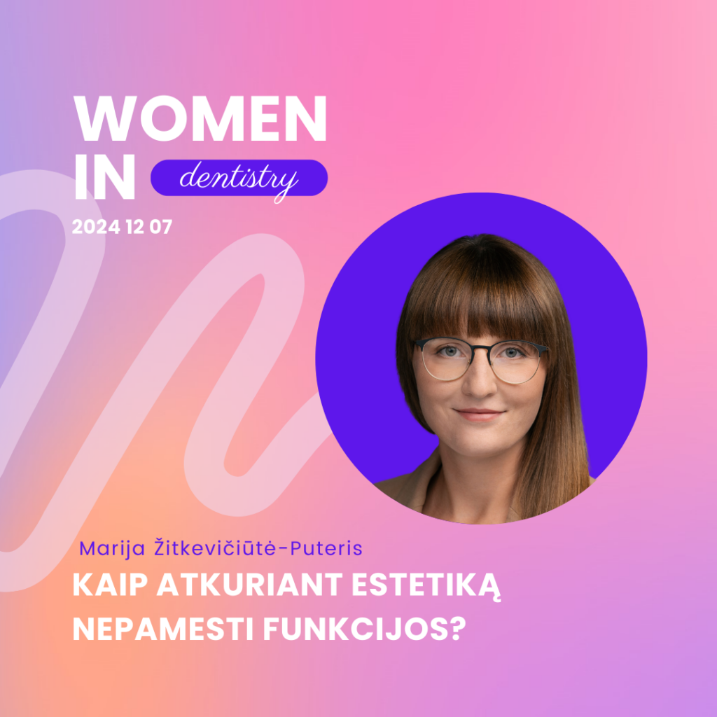 Siekiant estetikos yra būtina atsižvelgti į mus ribojančius funkcinius niuansus. Uždelsti kramtymo funkcijos pažeidimai, neleidžia atkurti estetinio vaizdo arba rezultatai nėra ilgaamžiai. Tam, kad sukurtume natūraliai atrodančių dantų vaizdą, svarbu suvokti, kas po tuo slepiasi. Kokie funkciniai elementai sukuria vietos ir apsaugo dantis nuo skilimo. Aptarsime, kuo svarbus paciento ištyrimas ir teisingas gydymo planavimas. Kaip, išsprendus funkcinius neatitikimus, susigrąžiname estetiką? Centrinis santykis, maksimali interkuspidacija, pavaškavimas, pernešimo kompozitu technika bei darbas komandoje su ortodontu, tai temos, kurias savo paskaitoje analizuos gydytoja odontologė Marija Žitkevičiūtė.
